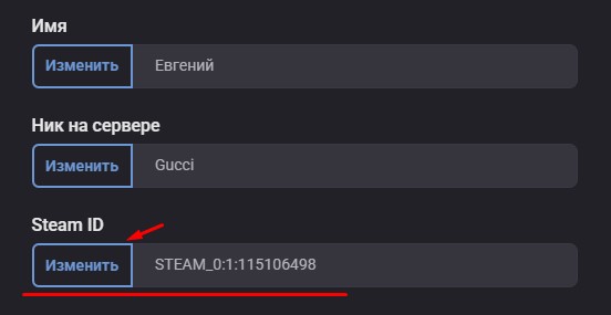 После сохранения SteamID необходимо перезайти на игровой сервер.